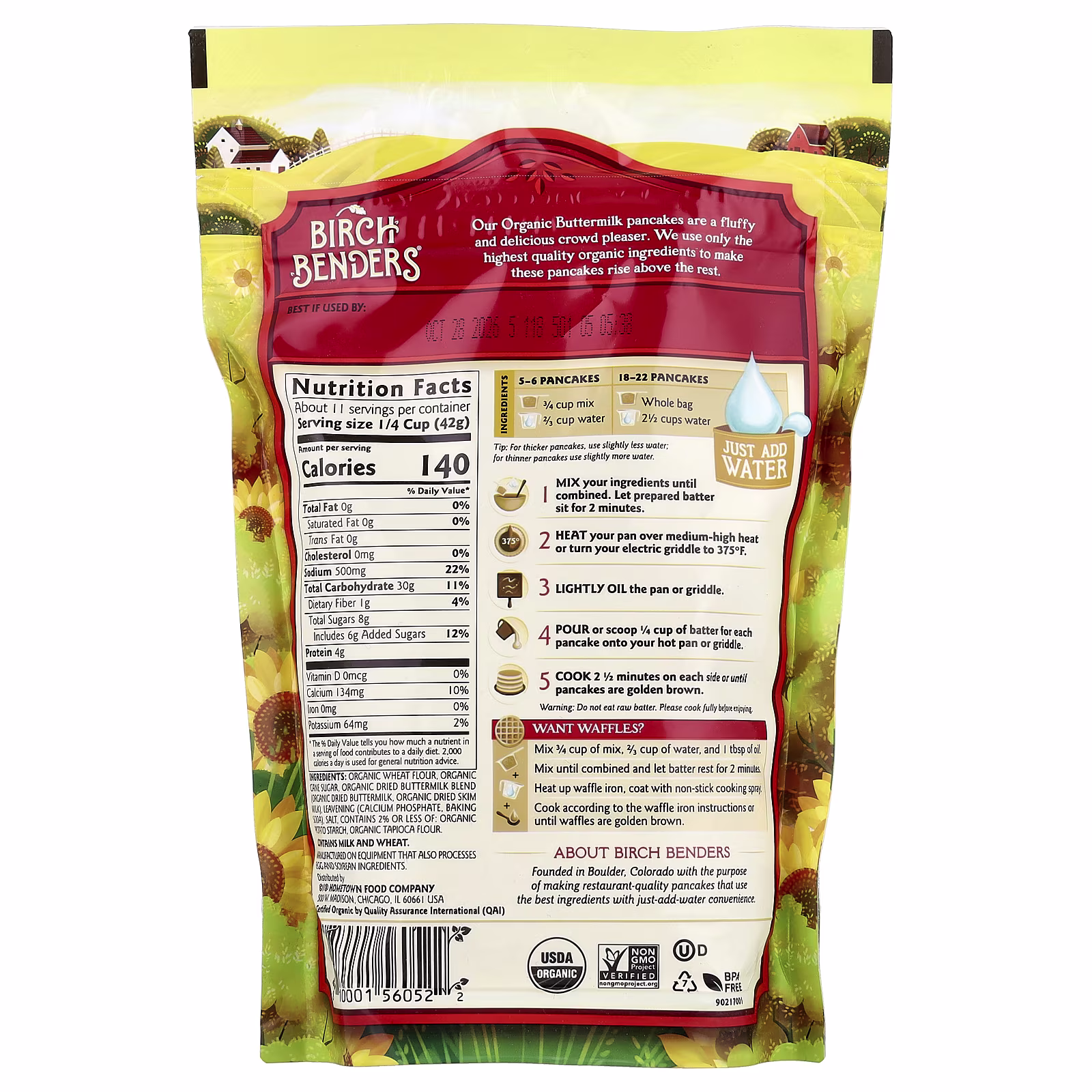 Birch Benders, Pancake & Waffle Mix, Organic Buttermilk, 454g.