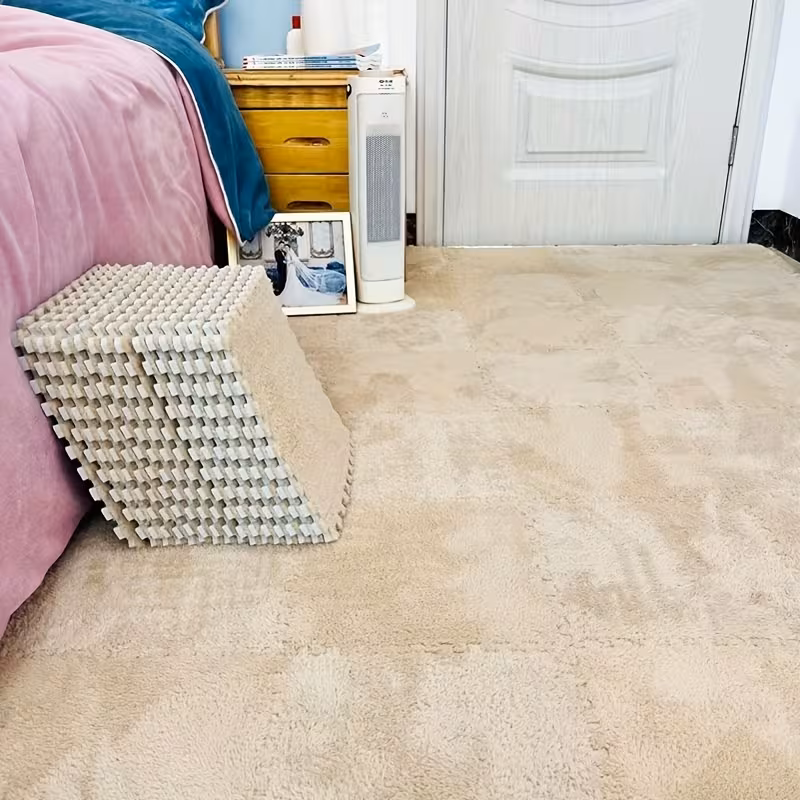 Fluffy Puzzle Floormat, beige- 30 pcs, 30x30cm