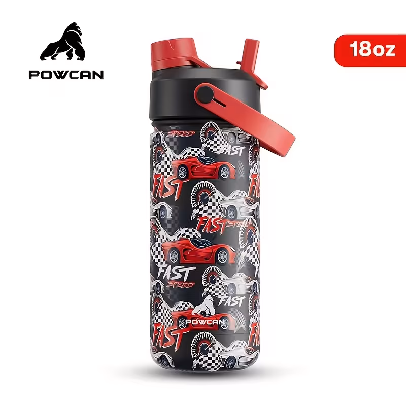 POWCAN 2-in-1 Straw and Spout Lid Insulated Water Bottle with handle, 532ml.