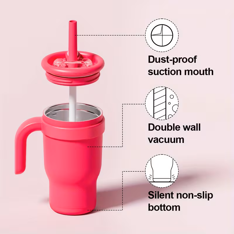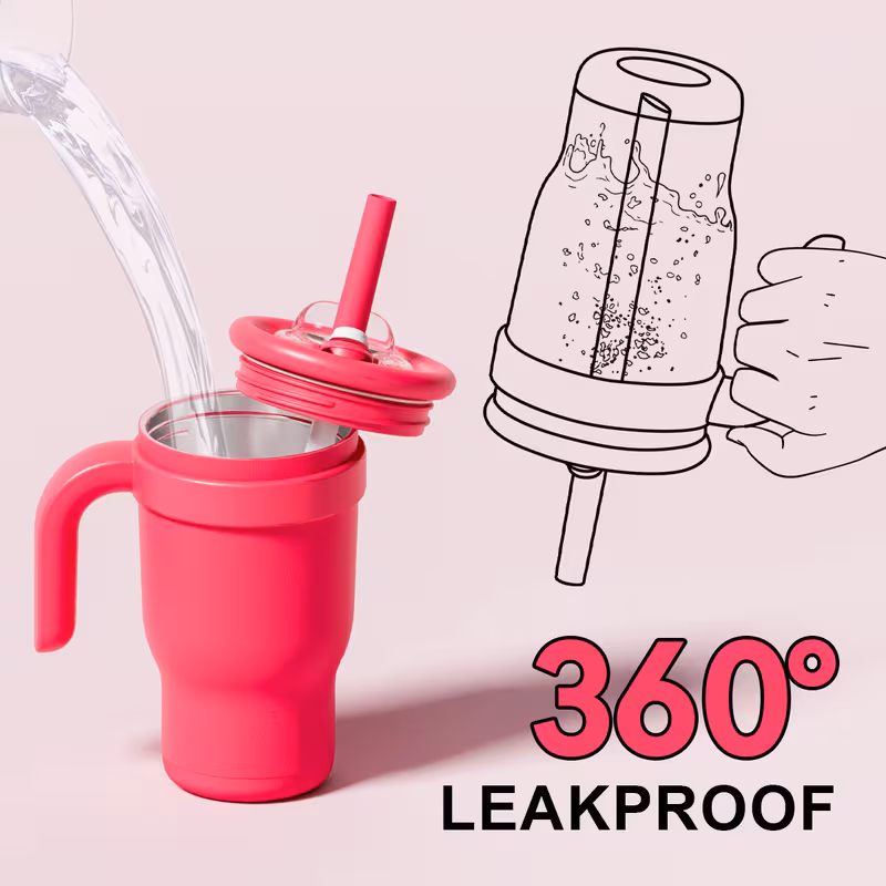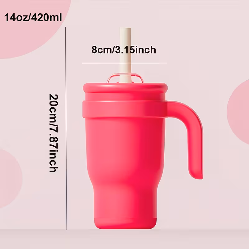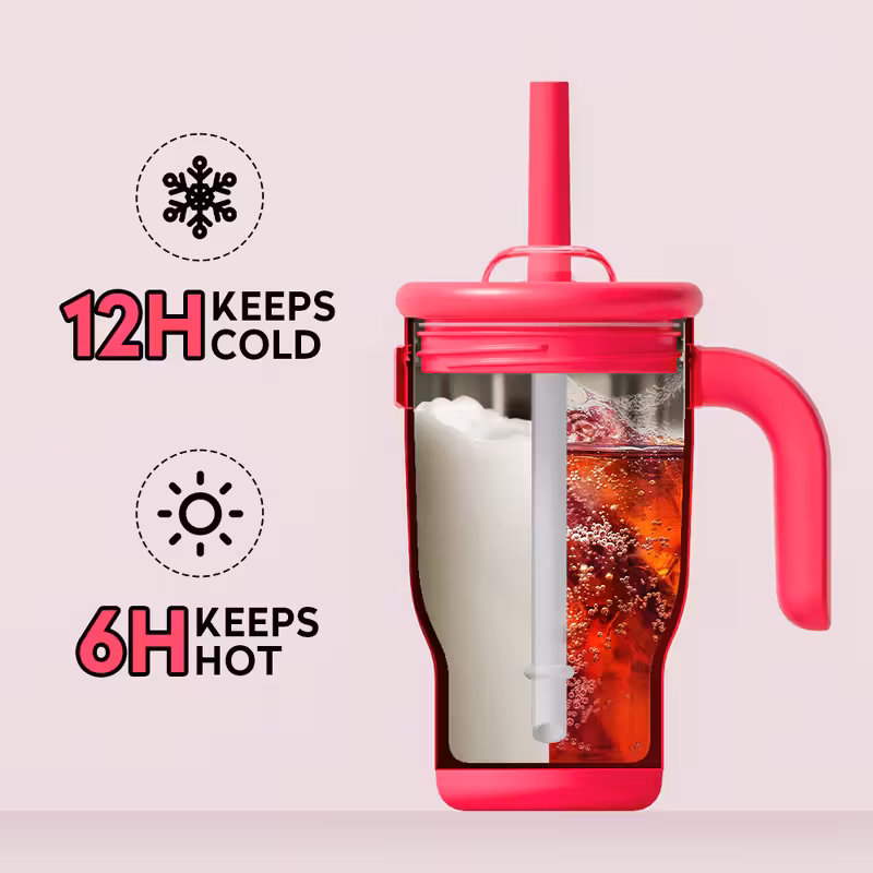 Insulated Stainless Steel Tumbler with Handle & Straw- Gradient Blue Orange